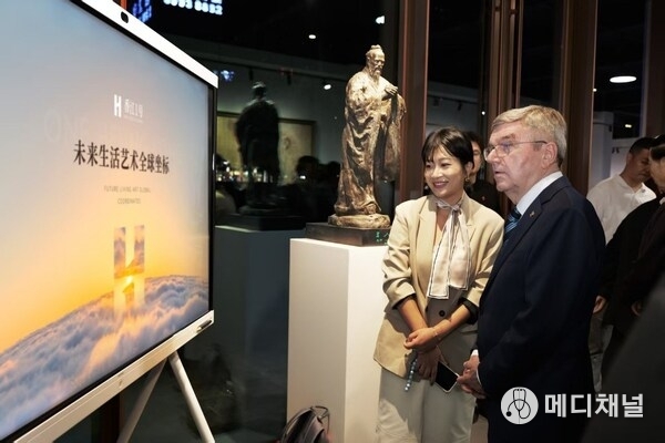 GUANGZHOU, China, Nov. 13, 2025 -- On the afternoon of November 10, Dr. Thomas Bach, Honorary President for Life of the IOC, visited Guangzhou. During his visit, he toured the 10th China Sports Art Exhibition and China Sports Culture Exhibition, reminiscing about his unforgettable experiences at the National Games over the years. He also received a Chinese-characteristic artwork as a gift from China Sports Museum. Afterward, Bach visited the One Heung Kong Art Square, where he explored an art exhibition by the renowned sculptor Yuan Xikun.