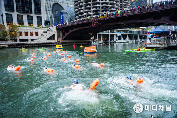 Chicago Mayor Brandon Johnson provided opening remarks and said, "The Chicago River Swim is a symbol of Chicago's resilience and progress. Once too polluted for recreation, the river has been restored as one of our city's greatest assets. Today shows how far we've come in reclaiming our environment for future generations."