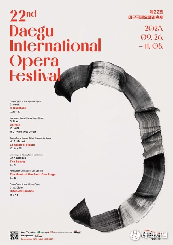 第22回大邱国際オペラフェスティバルは、古典名作と韓国的創作、国際交流が融合した多彩な舞台を披露する。ヴェルディ、ビゼー、モーツァルト、グルックなどの巨匠の代表作が一堂に会しオペラの魅力を伝えるほか、創作・制作コンチェルタンテ『美人』は韓国伝統美術と現代オペラを融合し、新たな感覚を提示する。さらに「2025–2026韓日中文化交流年」を記念した特別ガラコンサート『東方の心、一つの舞台』が加わり、韓・日・中が共演する特別な舞台が展開される。今年の舞台は時代を超えた響きを届け、大邱国際オペラフェスティバルのアイデンティティをさらに輝かせる。