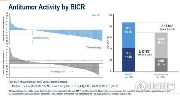 Sac-TMT showed longer DoR versus chemotherapy; and ORR was also superior with sac-TMT to ICC.