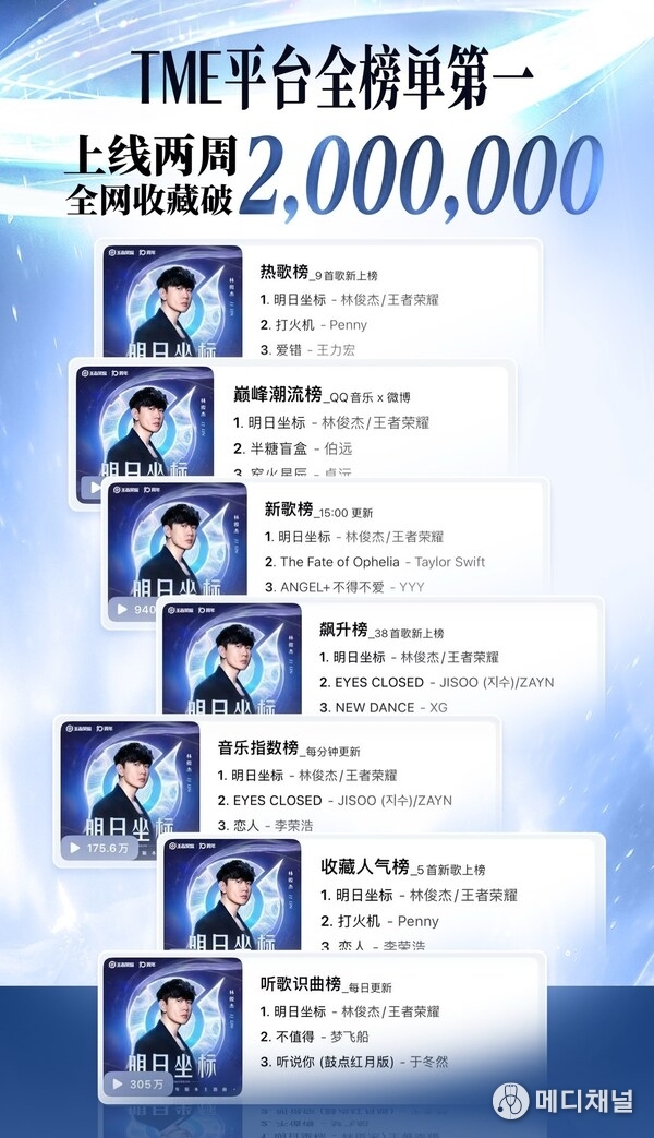 [ 메디채널 김장윤(JASON KIM) 기자 ] 선전, 중국 2025년 10월 29일 -- 글로벌 인기 게임 '아너 오브 킹즈(Honor of Kings)'의 10주년 기념 테마곡 '아틀라스 오브 투모로우(Atlas of Tomorrow)'가 공개됐다. 이 곡은 텐센트 뮤직 엔터테인먼트(TME)의 QQ 뮤직(QQ Music), 쿠구(Kugou), 쿠오(Kuwo)를 비롯해 애플 뮤직(Apple Music), 스포티파이(Spotify), KKBOX 등 주요 글로벌 플랫폼에서 스트리밍 중이다. '아틀라스 오브 투모로우'는 발매 직후 다수의 차트 1위를 석권하며 만도팝(Mandopop)과 글로벌 게임 IP가 만난 최신 블록버스터 크로스오버로 주목받고 있다.