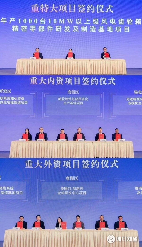 During the symposium, 91 key projects were signed, covering advanced manufacturing, technology innovation, foreign investment, agriculture, and finance. Among them, a wind-turbine gearbox R&D and manufacturing facility capable of producing 1,000 high-precision 10-MW units annually will strengthen Xishan's advanced equipment cluster. Three additional domestic projects — an intelligent manufacturing facility for renewable-energy and nuclear-fusion equipment components, the FanRuan Software headquarters and R&D facility, and a mass-production site for advanced process equipment and materials — will further reinforce the district's industrial base and competitiveness.