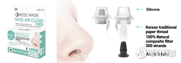 The second company, Airlab, and its Nose Mask Nose Air Clean provides an innovative intranasal filtration system that helps users breathe clean air safely and discreetly. The device features a patented woven filter made from 300 strands of hanji (Korean traditional paper) natural fibers, blocking 70% of PM2.5 fine dust, 30–45% of vehicle exhaust gases, and 99.9% of harmful bacteria, including COVID-19. Infused with peppermint or phytoncide, it offers a refreshing and hygienic breathing experience.
