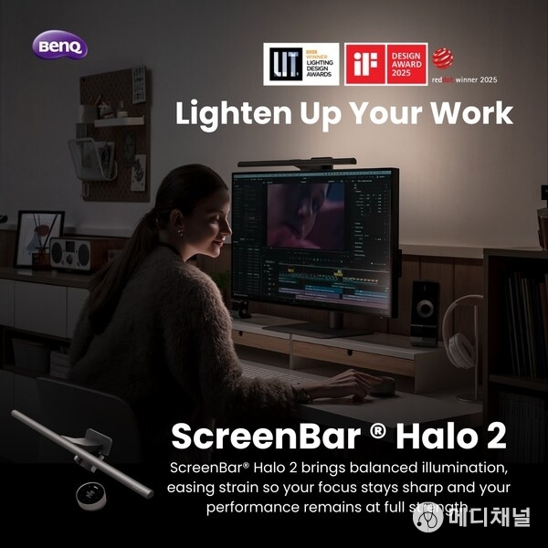 Designed for screen-centric setups, BenQ ScreenBar Halo 2 focuses on visual balance rather than brightness alone. Mounted directly onto the monitor, it combines asymmetric front lighting with a soft tri-zone backlight to create a more even transition between the display and its surroundings.