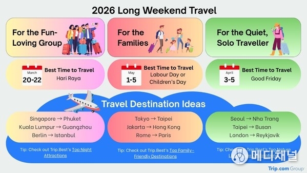 SINGAPORE, Jan. 22, 2026 -- Long weekends in 2026 are set to be a time for meaningful getaways, as more travellers look to maximise their public holidays by squeezing in short escapes, whether domestic or abroad. Globally, Trip.com Group is seeing over 34% year-on-year increase in bookings for short trips of four days or less, with growth especially prominent in Europe[1]. Working adults, primarily those aged 25 to 49 years old, are the main drivers of this trend, accounting for more than half of the bookings for short trips of four days or less.