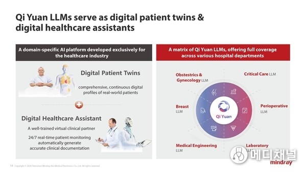 4. AI Layer: The Qi Yuan LLM family, launched in late 2024, now expanded from critical care to perioperative care, breast health, OBGYN, and laboratory settings. Deployed on-premises to protect patient privacy, Qi Yuan creates digital patient twins, enables 24/7 real-time monitoring, and automates clinical documentation, acting as a virtual clinical partner in high-stakes scenarios.