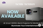 [ 메디채널 김장윤(JASON KIM) 기자 ] TK705i / TK705STi Deliver Vivid Brightness, Smart Setup, and Built-In Google TV Streaming for Instant Entertainment SYDNEY, Nov. 14, 2025 -- BenQ, internationally renowned innovator of digital lifestyle devices, today debuted TK705i and TK705STi home entertainment projectors designed for easy, high-quality entertainment in modern living spaces. These new TK series models feature BenQ-exclusive CinematicColour™ and HDR-PRO™ technologies for vibrant 3,000 ANSI-lumen visuals in 4K UHD, and built-in tools for fast image setup and flexible placement including no