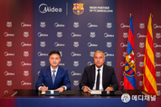 世界第1位のスマート家電ブランドが5シーズンの契約を締結、2026/2027シーズンよりFC Barcelonaのユニフォームのスリーブにロゴ掲載 バルセロナ、スペイン、2025年9月3日 -- MideaとFC Barcelonaは、[ 메디채널 황정호 기자 ] 世界第1位のスマート家電ブランドが2026/2027シーズンより、リーガ・エスパニョーラ(La Liga)およびコパ・デル・レイ(Copa del Rey)優勝クラブであるFC Barcelonaのメインパートナーとなることを誇りをもって発表します。この歴史的な5シーズンの契約により、MideaのロゴはFC Barcelonaの全試合用ユニフォームおよびトレーニングウェアのスリーブに表示されるほか、リーガ・エスパニョーラ(La Liga)ホームゲームでは広範なブランド露出が実現します。 9月2日、Mideaの経営陣がSpotify Camp Nouを訪問し、Midea国際事業部社長のLewis Fu氏とFC Barcelona第一副会長のRafael Yuste i Abel氏により契約書に署名が行われました。 Rafael Yuste氏は次のように述べています。「FC Barcelonaは、2026/27シーズンよりMideaを偉大なるBar&ccedi