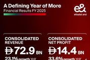 連結純利益は144億 AEDに達し、前年同期比34%の伸び e&の加入者数はアジア、アフリカ、中東、中・東欧で2億4470万に増加 年間配当は1株当たり90フィルスで、2026年には95フィルスに増額される予定 グループCEOのHatem Dowidar氏は、6年間の任期を終え、3月末で退任 Masood M. Sharif Mahmood は、e& UAEのCEOとしての現職に加え、4月1日付でグループCEOに就任 ABU DHABI, UAE, 2026年2月25日 -- e&は2025年に記録的な業績を達成し、連結売上高は前年比(YoY)23.1%増の729億 AEDとなりました。 連結純利益は、各事業の進展に牽引され、33.6%増の144億 AEDとなりました。連結EBITDAは前年同期比21.1%増の320億 AEDに達しました。 e& UAEは堅調な業績を続け、加入者数は前年比8.4%増の1,630万人を突破しました。同グループの総加入者数は2億4470万人に達し、2024年比で31.3%の伸びを示しました。 2025年度財務ハイライト 2025