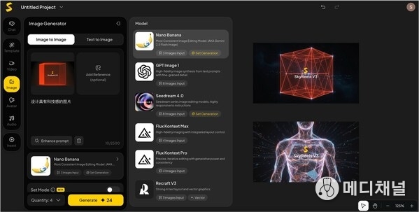 今回の SkyReels アップデートにより、すべてのAI機能と世界最先端のAIモデルが、1つのクリエイティブワークスペースにシームレスに統合された。1つのキャンバスがオールインワンのAIツールとして機能し、画像、動画、音楽、その他のマルチモーダルコンテンツをスムーズに統合できる。