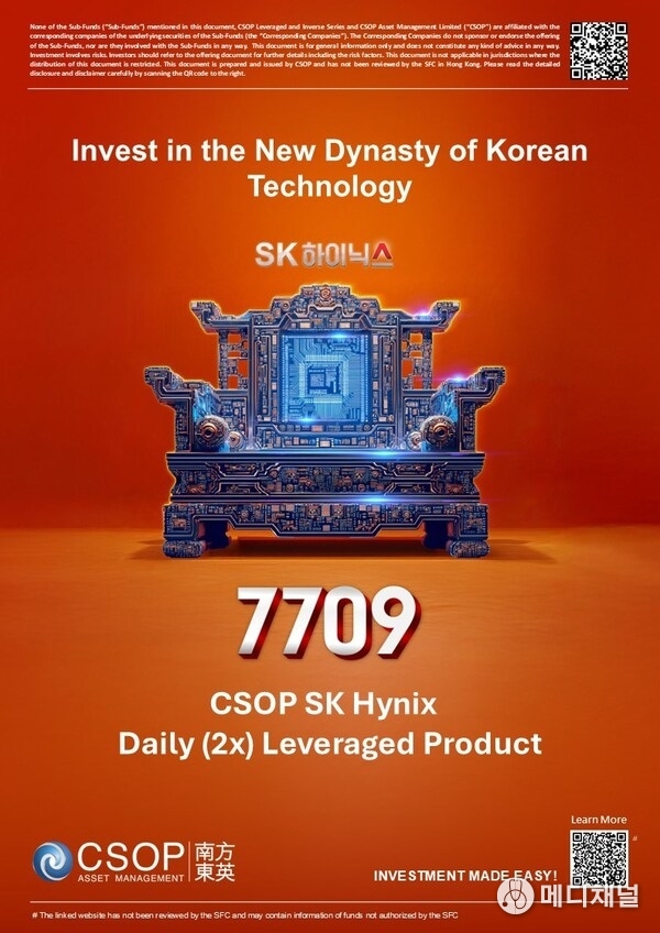 HONG KONG, Oct. 16, 2025 -- CSOP Asset Management Limited (CSOP), one of Asia's premier Exchange Traded Product (ETP) issuers, announces the launch of the CSOP SK Hynix Daily (2x) Leveraged Product (stock code: 7709.HK) on the Hong Kong Stock Exchange (HKEX) on 16 October 2025. This follows the successful listing of leveraged and inverse products tracking its peer, Samsung Electronics, in May 2025. The CSOP SK Hynix Daily (2x) Leveraged Product is the world's only leveraged exchange traded product tracking SK hynix, designed to empower investors to seize the upside of one of Korea's most illustrious stocks during Asian trading hours.