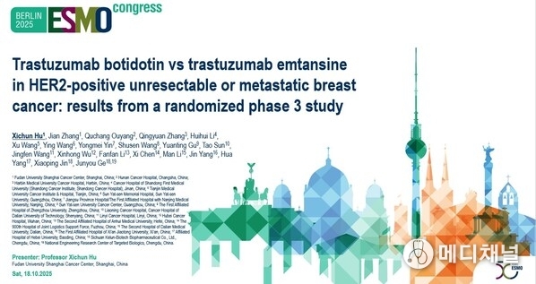 CHENGDU, China, Oct. 20, 2025 -- Sichuan Kelun-Biotech Biopharmaceutical Co., Ltd. (the "Company") announced that at the 2025 European Society for Medical Oncology (ESMO) Congress held in Berlin, Germany, Results from a Phase 3 study of the Company's human epidermal growth factor receptor 2 (HER2)-directed ADC trastuzumab botidotin (also known as A166) trastuzumab botidotin versus trastuzumab emtansine (T-DM1) in HER2-positive unresectable or metastatic BC was presented as an oral report by Professor Xichun Hu from Fudan University Shanghai Cancer Center (Presentation # LBA24, Proffered paper session 1: Breast cancer, metastatic).