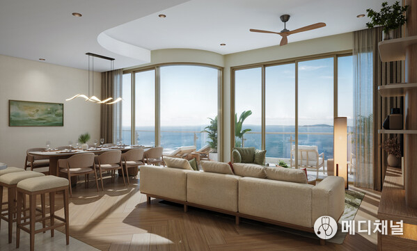 If the exteriors speak the language of coastal modernism, the interiors, particularly within the Peace Tower, draw from a more poetic source. Inspired by the "golden forest," the design narrative captures the delicate quality of light as it filters through trees at sunset. Warm tones, soft textures, and layered materials evoke a sensory calm, creating interiors that invite both reflection and relaxation.