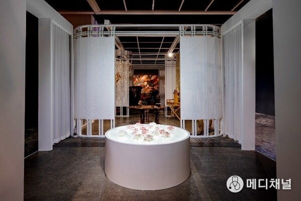 With "Material poetics between East and West" as its core, Leo Wong's installation "Peony Pond" features twenty ceramic flowers captured at different stages of life, each with its own posture and chromatic depth. These are transformed into a "courtyard of pools and springs" woven from porcelain blooms and light. Set within an architectural installation that echoes a classical Chinese garden, the work stages a dialogue between flowers and space to evoke a contemporary garden scene infused with Eastern lyricism, in response to the traditional Chinese garden ideal of "painting with scenery".