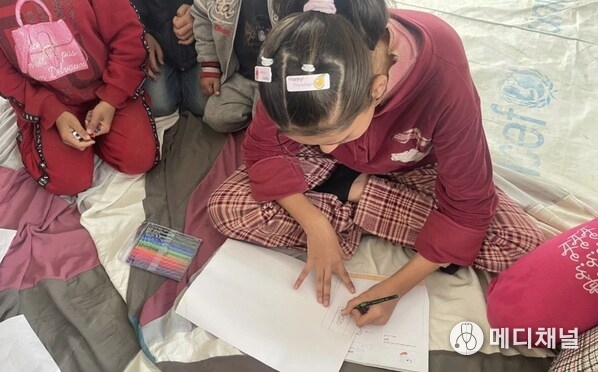 Masa says, "Since joining the sessions at the educational tent, I have felt some hope that life could return to us. I made friends and established a routine in my life. I also started drawing beautiful pictures again."