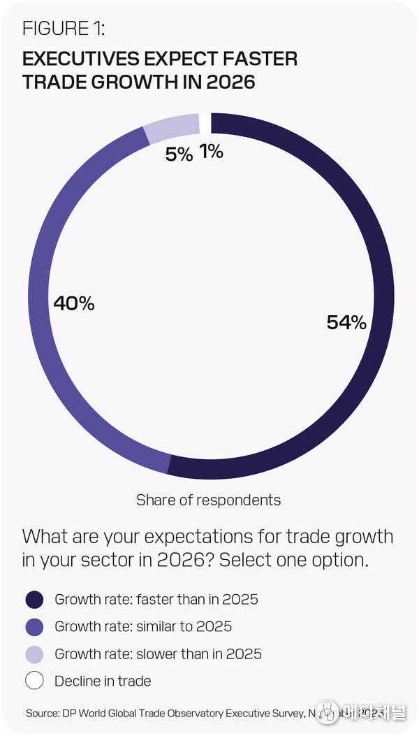 [ 메디채널 황정호 기자 ] 글로벌 무역 관측소 연례 전망: 관세, 비용 및 정책 불확실성에도 불구하고 94%가 2026년도 성장세를 2025년도와 유사 내지 상회할 것으로 예상