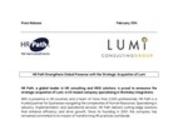 PARIS, Feb. 10, 2026 -- HR Path, a global leader in HR consulting and HRIS solutions, is proud to announce the strategic acquisition of Lumi, a US-based company specializing in Workday integrations. With a presence in 28 countries and a team of more than 2,500 professionals, HR Path is a trusted partner for businesses navigating the complexities of Human Resources. Specializing in advisory, implementation, and operational services, HR Path delivers cutting-edge solutions that enhance efficiency and drive growth. Since its founding in 2001, the company has remained committed to